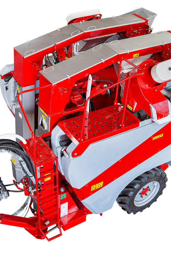 Entrainée par deux chaines, apporte une plus grande robustesse sans entretien. La Selecta 3 permet une récolte près du sol à grande vitesse.